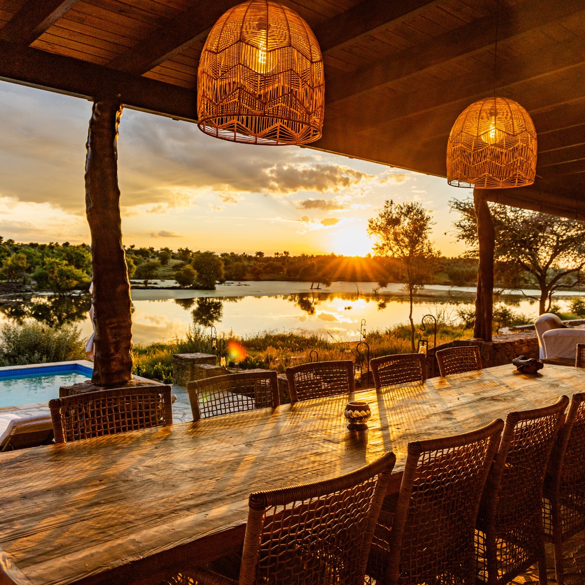 Waldeck Lodge is reserved for one group at a time, ensuring absolute privacy and a deeply personal experience. The main lodge is an elegant gathering space, featuring a stylish lounge, a curated bar and a dining hall where every meal is a moment to savour. Step onto the expansive patio, take a dip in the heated pool or simply unwind as the sun casts golden hues over the horizon. Whether you seek adventure or stillness, this is your space to make your own.